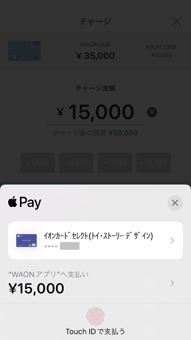 黒ボタンで1万4千円チャージ