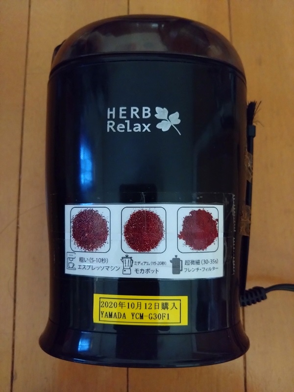 3種類の挽き具合を電動ミルに貼る