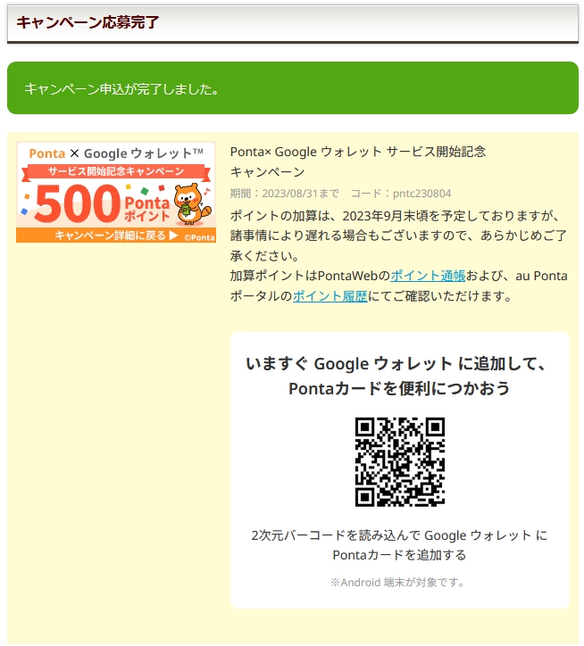 Pontaカードをウオレット登録完了