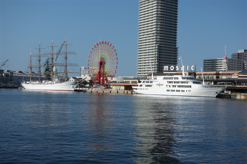 「海王丸」の前に停泊しているのはクルーズ船「コンチェルト」