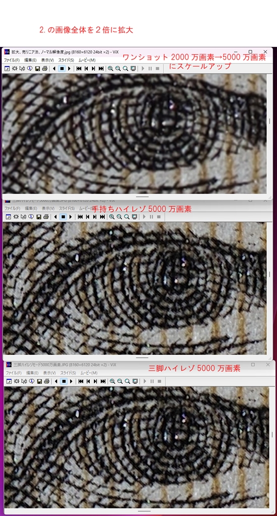 2.ノーマル解像度2000万画素を5000万画素にアップスケーリング
