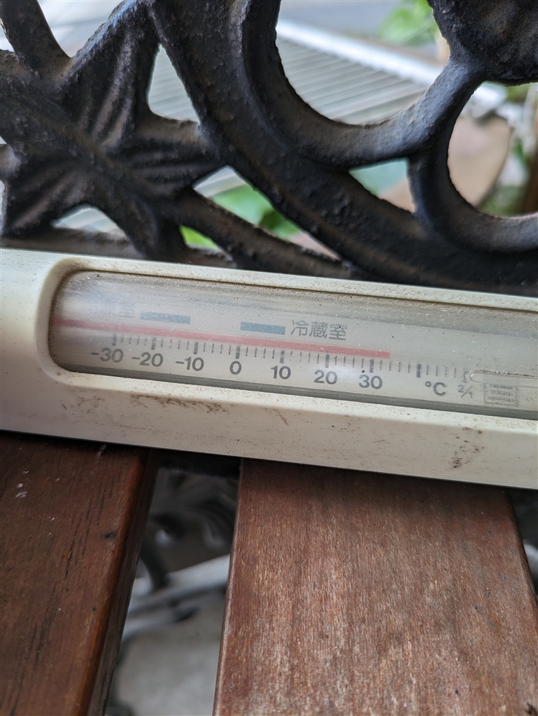 休憩した酒屋のベンチ(日陰で涼しい)でこの温度