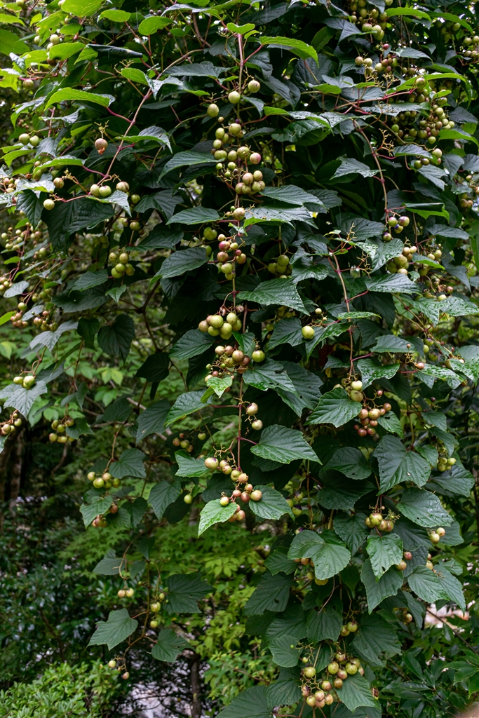 蔓に丸い小さな実がびっしり。 ノブドウ??