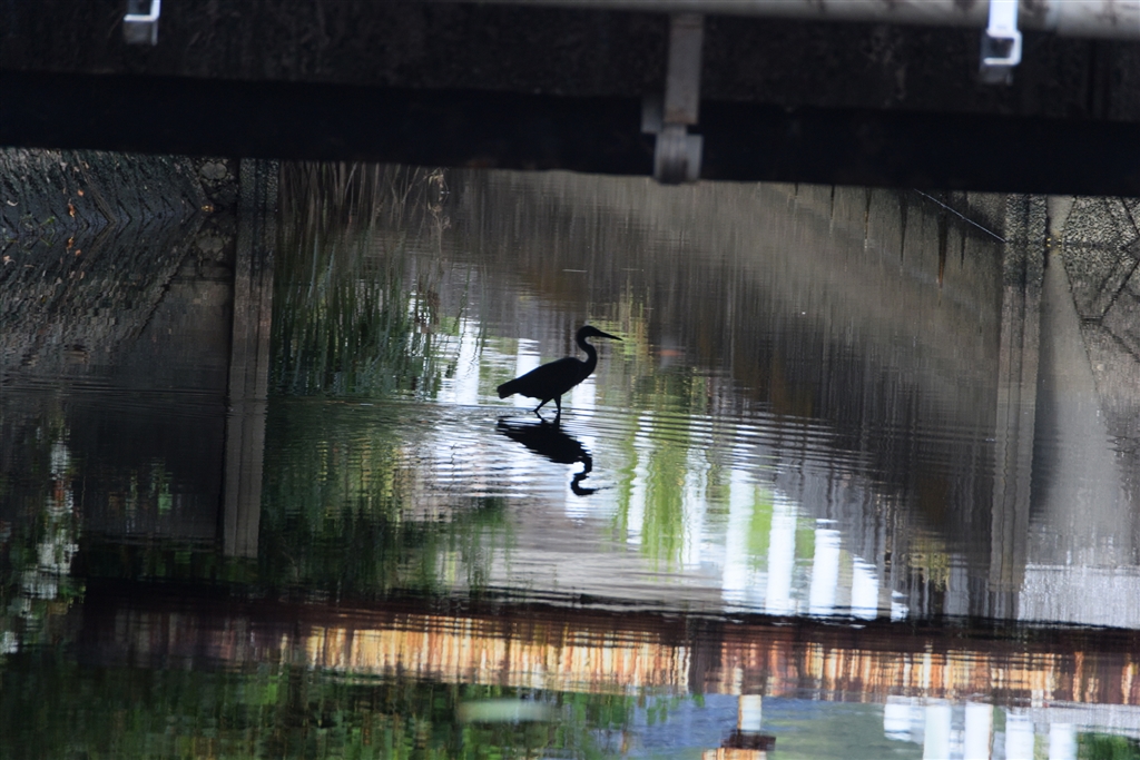 クロサギ!と目をこらしたらシラサギでした。国道下を貫通する暗橋の向こう側100m先
