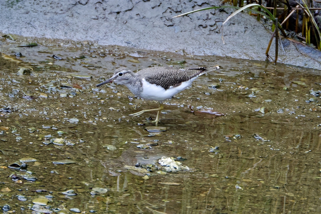 海浜河口の流れの中の小鳥