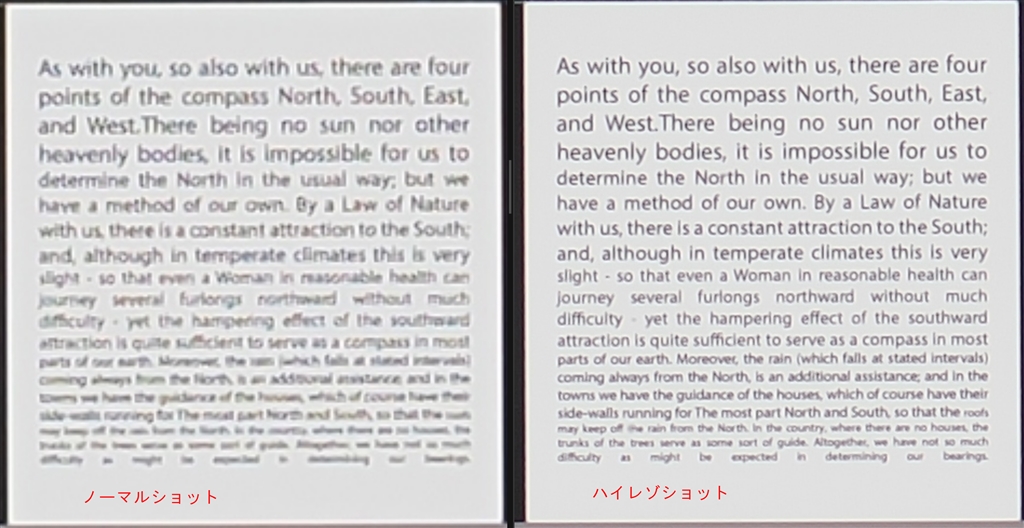左「ノーマルショット」右が「ハイレゾショット」、解像がアップ!