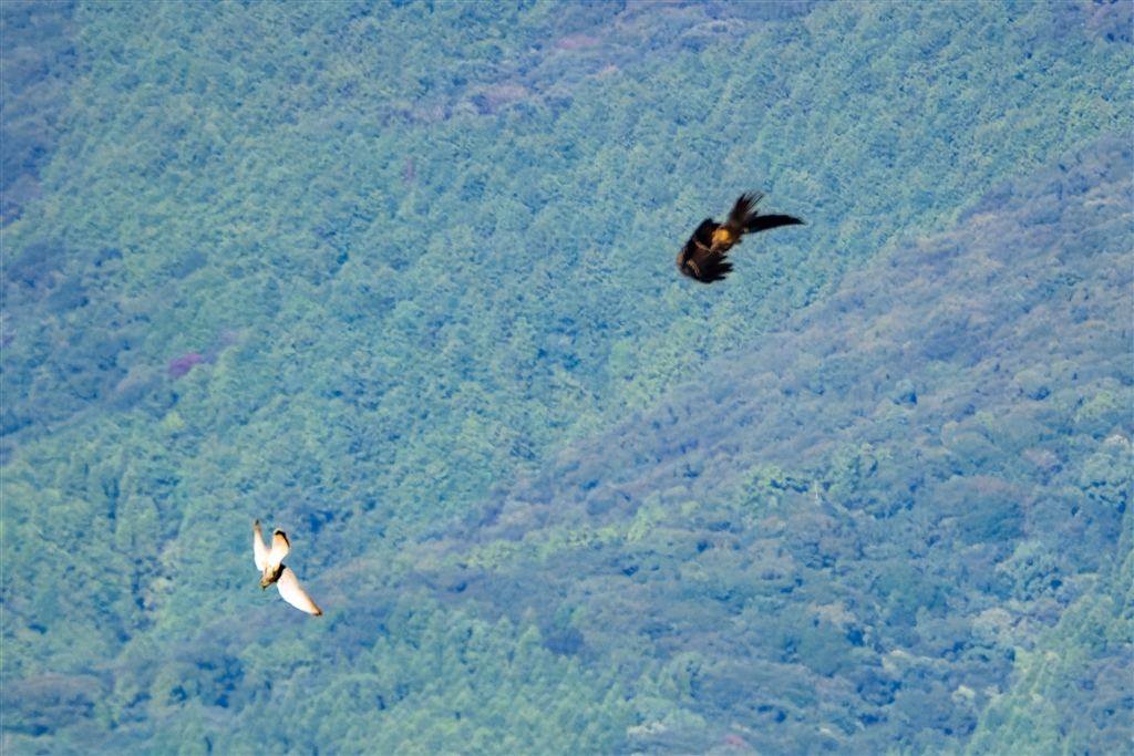 ツミがトビに追われて