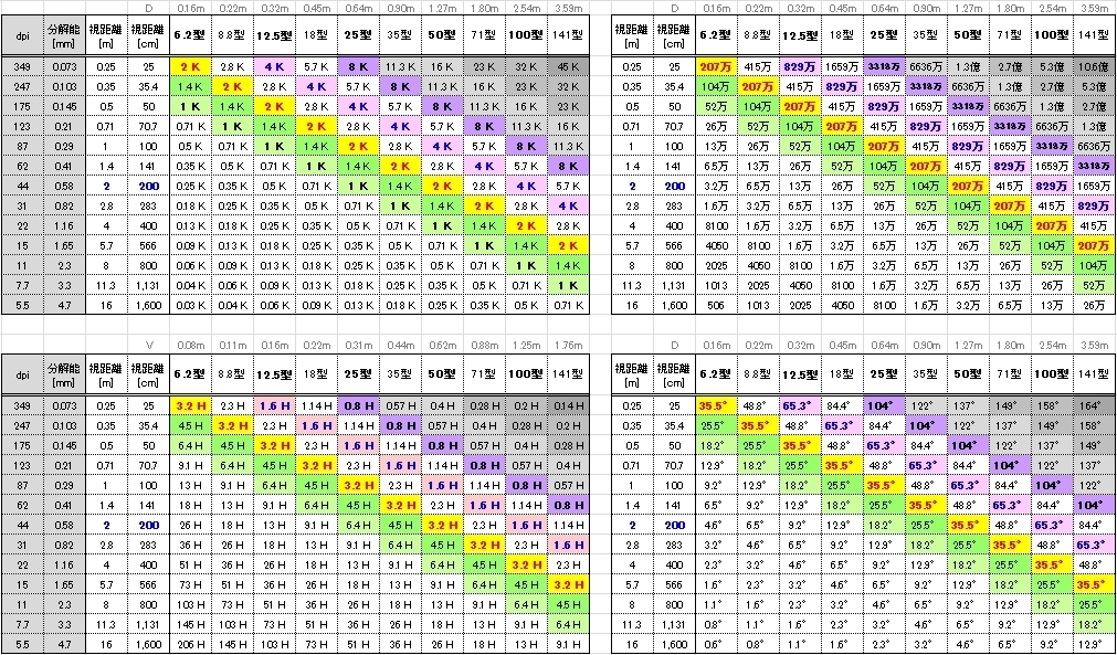 【視力1.0】鑑賞距離・画面サイズ⇒解像dot数など