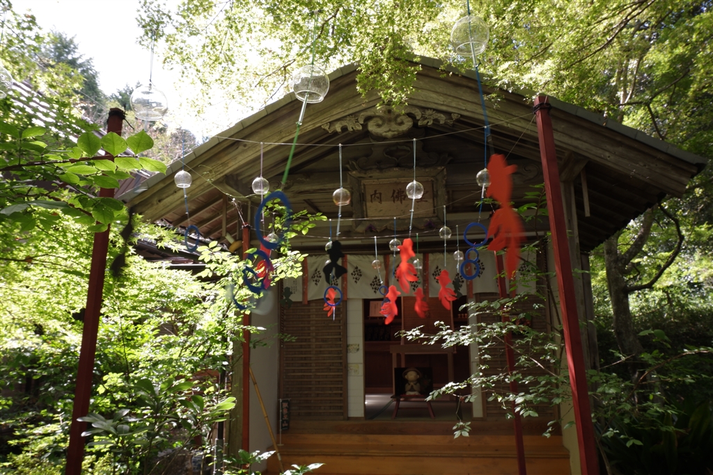 お堂の前には風鈴が飾られています。