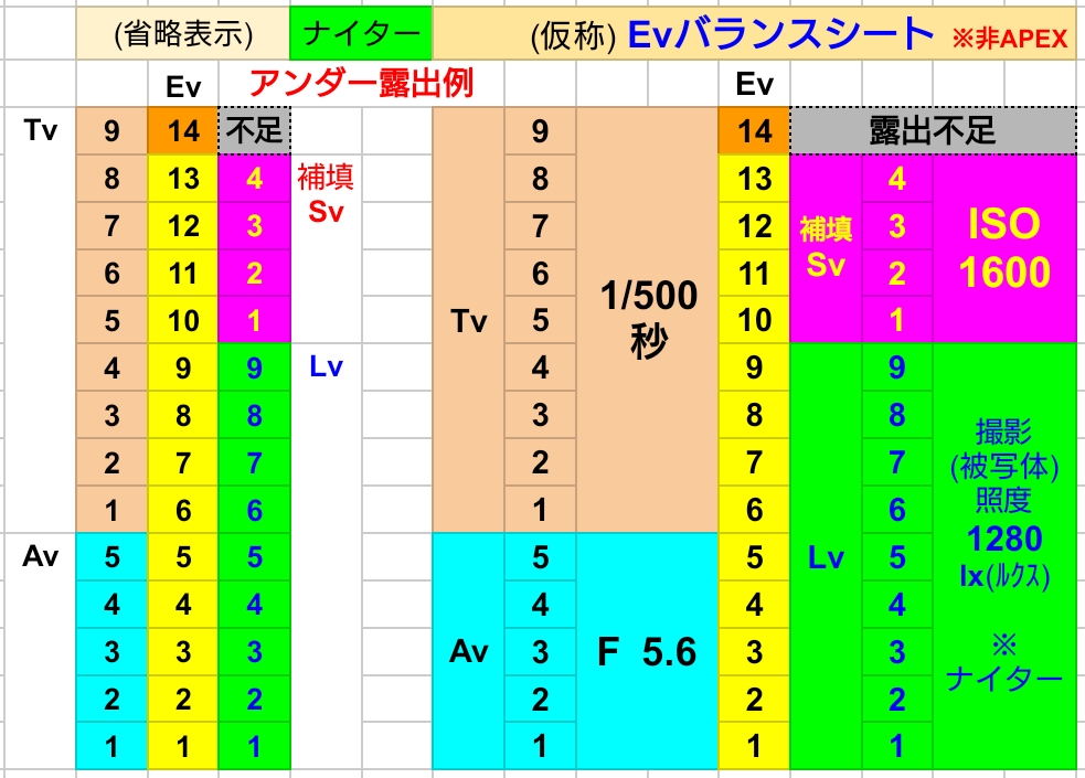 (ついでに)左右のEvバランスシートの撮影対象の明るさ(Lv)が同じ場合