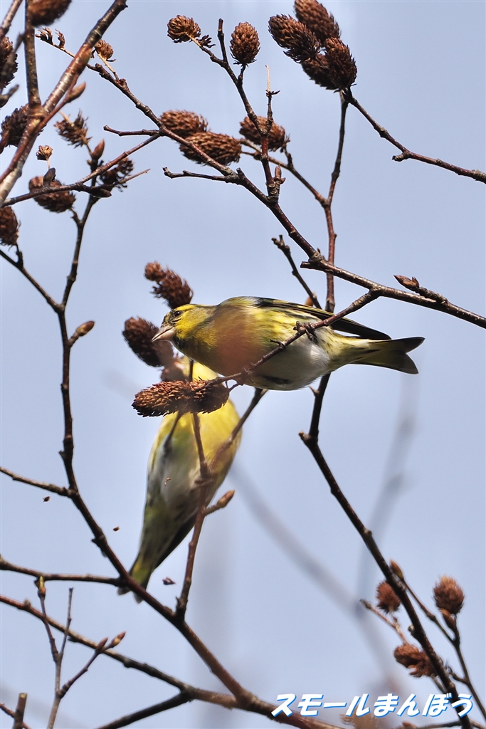 高い場所でマヒワがお食事中
