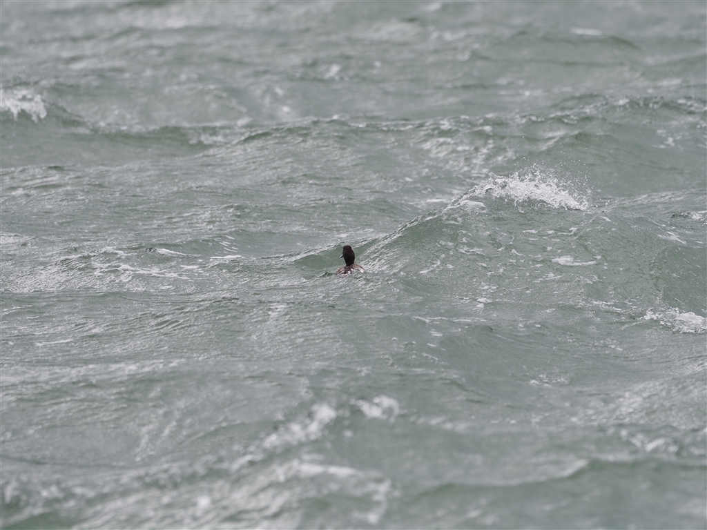 寺泊漁港 港の中も波高し スズガモ♀?