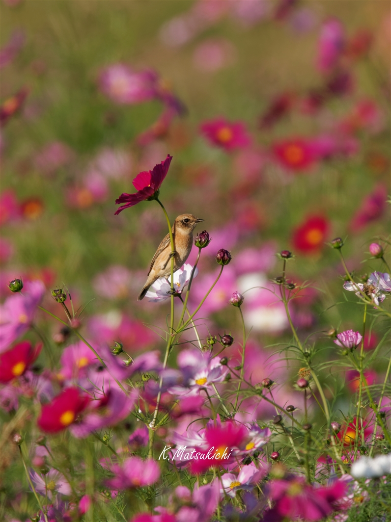 秋桜傘をさして
