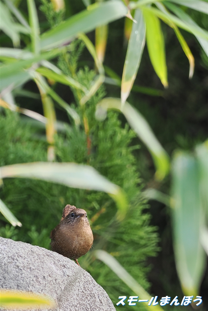 笹藪から出てきたミソサザイ