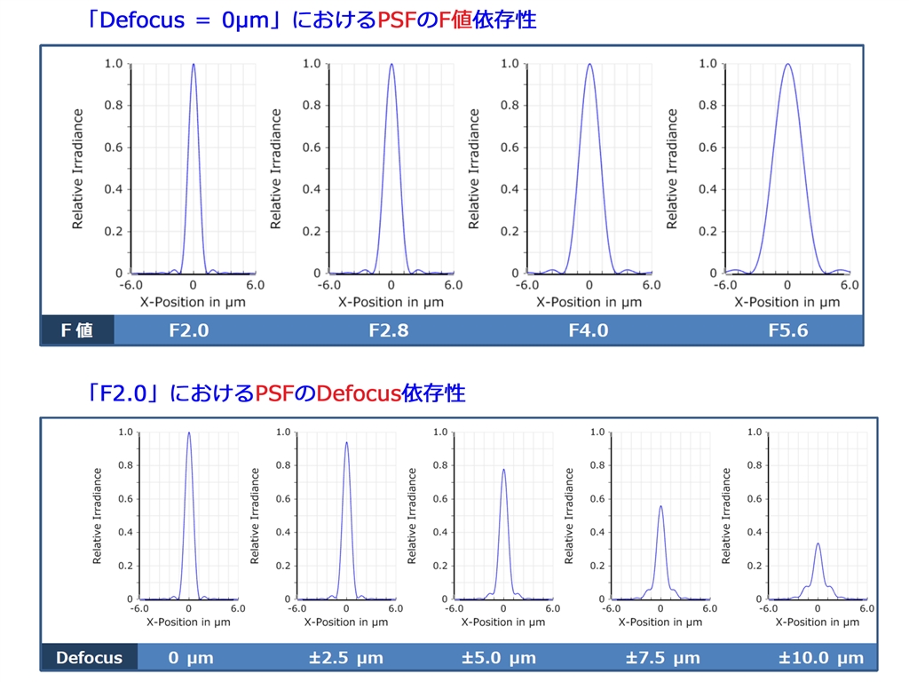PSFに対するF値とDefocusとの依存性
