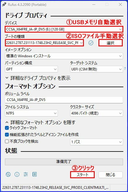 13-ISOファイルをUSBメモリに書き込み完了>書き込み時間=32秒