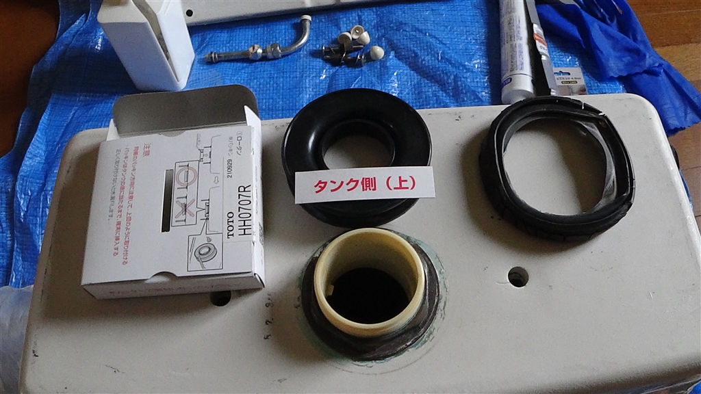 潰れたパッキンと新品パッキン
