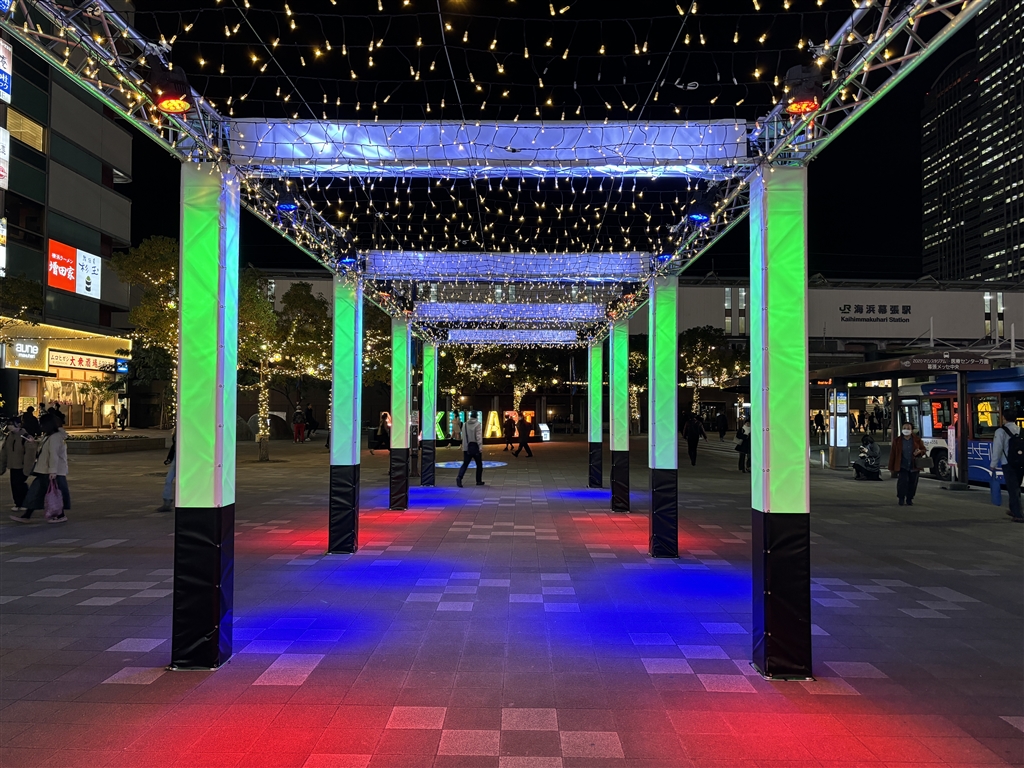 CiPhone15で海浜幕張駅前:やや白飛び/色飽和気味ですがメモには十分