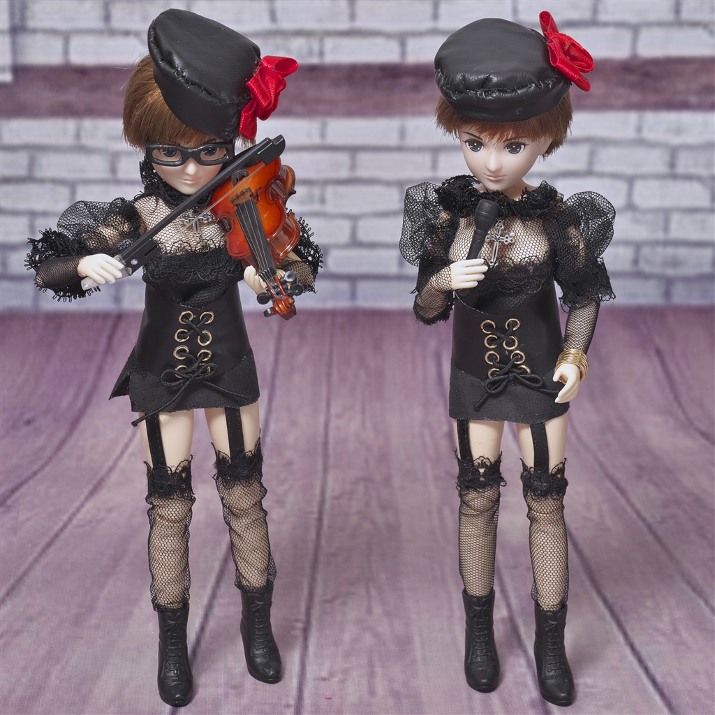 特注のお洋服を着たお人形さん二人