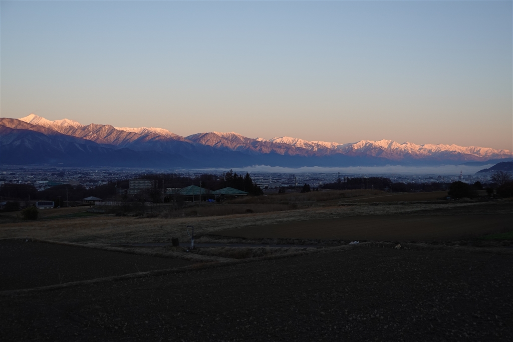 朝陽を浴びる北アルプス連峰(50mm)