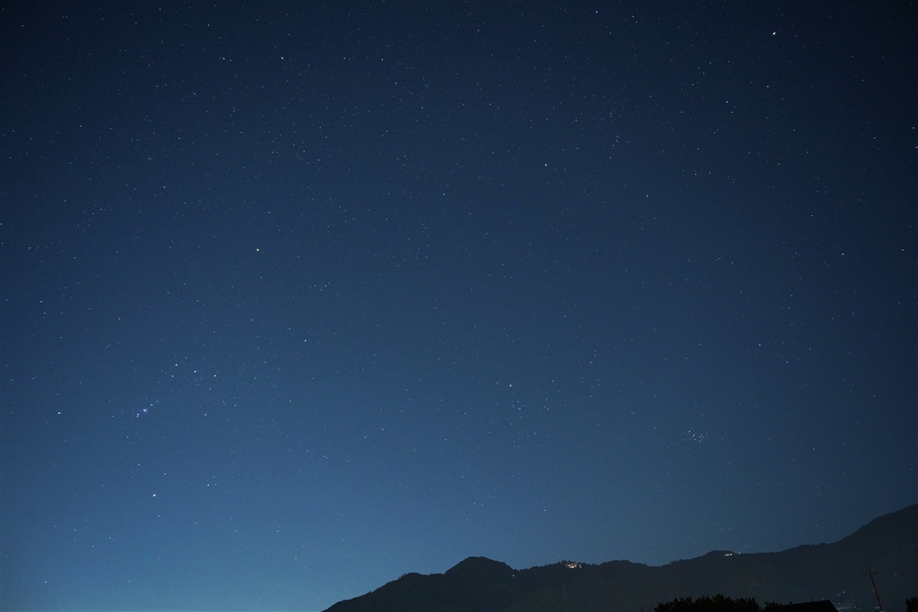 冬の空。 左下にオリオン座 右下にすばる など