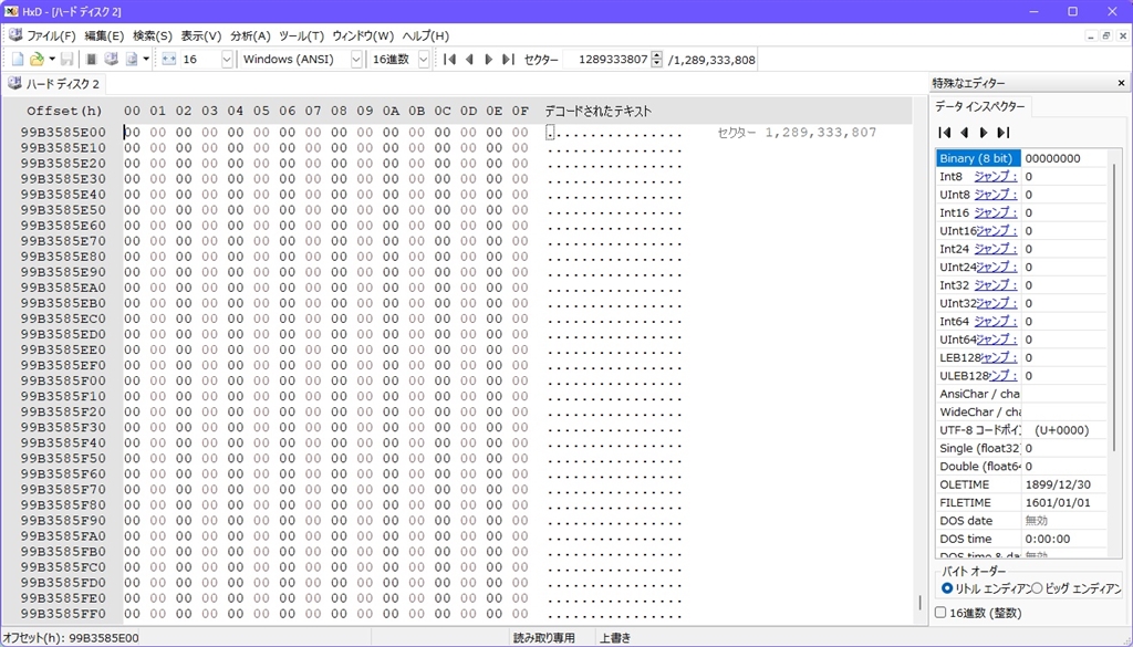 『3 HxD 2.5.0.0 全セクターのほとんどは all 0』 CFexpressカードすべて tnk85f14さんのクチコミ掲示板画像3/4