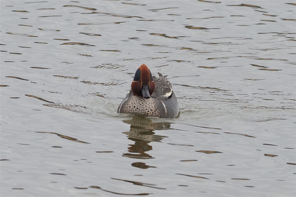 アメリカコガモ 両肩に白い縦のラインがタスキ掛けの様に