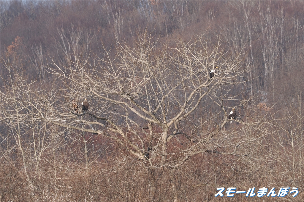 遠いなぁ〜オオワシ×3、オジロ×1