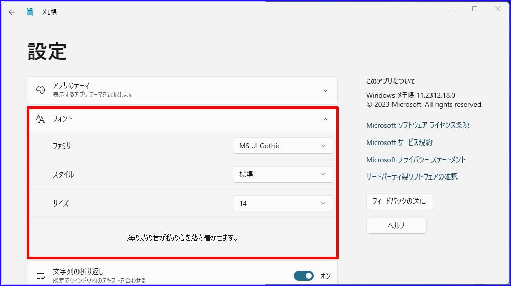 メモ帳のバージョン=11.2312.18.0