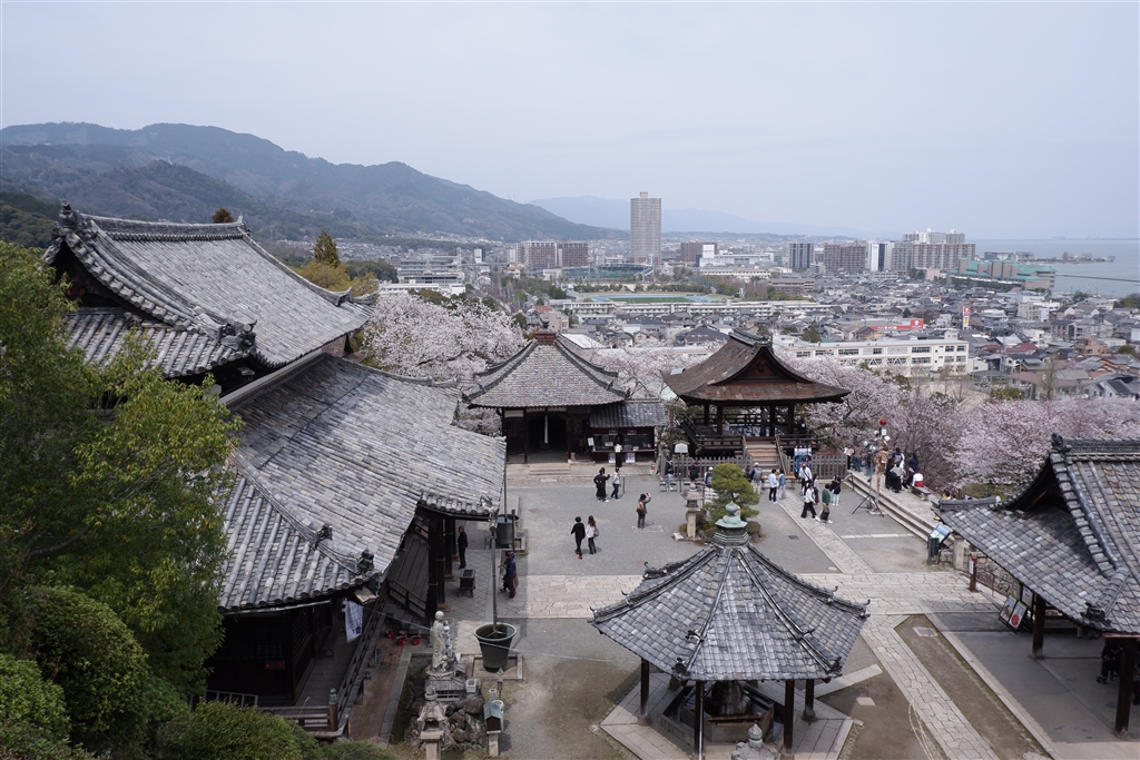 境内の展望所より観音堂と大津市街を望みます。