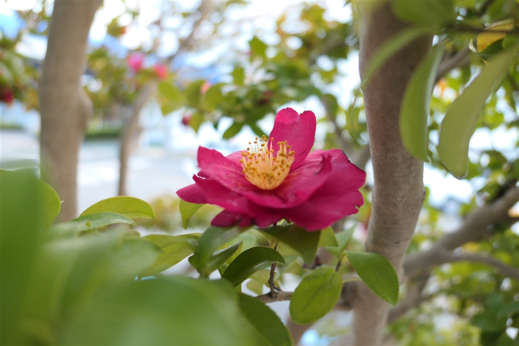 DMC-LX9にて職場近くの山茶花を撮影(F1.4、露出補正±0)