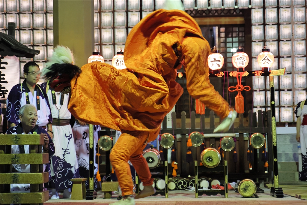 飛び跳ねる獅子舞(表と裏打ちのコンビの良さが欠かせない)