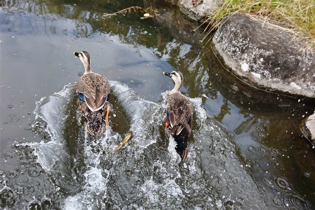 突然に現れた私を見て慌てて逃げるカモたち