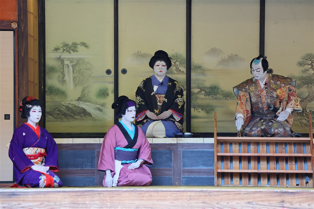 育ての両親の前で信夫(実は弁慶の娘)と実母が久しぶりに会い談笑する