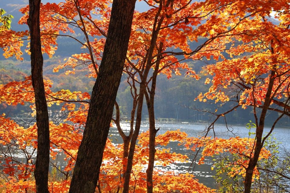 沼を半周して休憩、ベンチからの眺め。