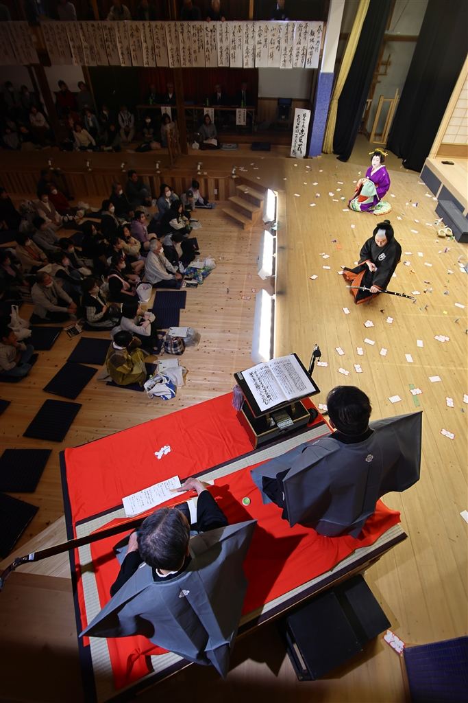 唄方(うたかた)と三味線方(しゃみせんかた)の上から舞台を撮ってみる