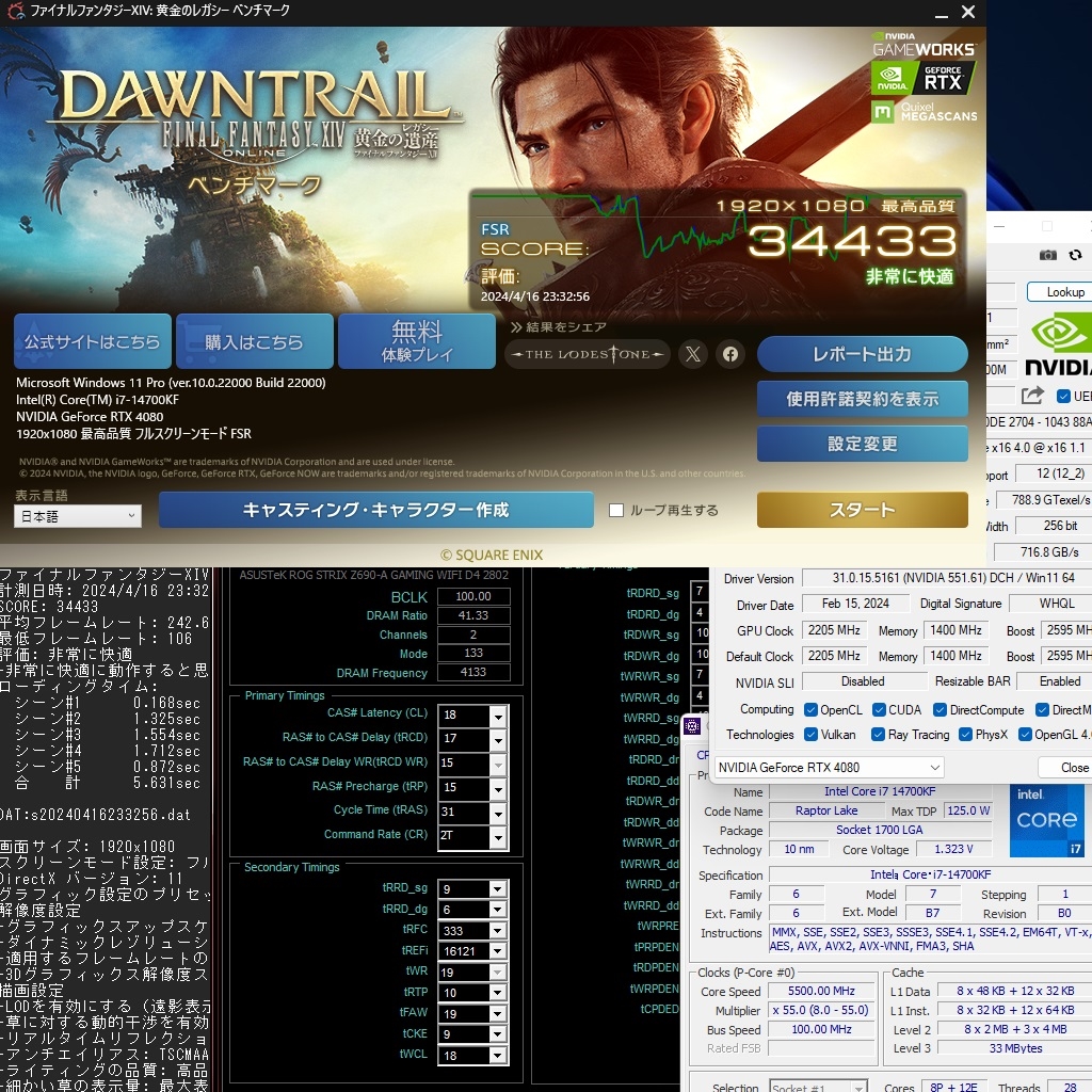 FF14黄金 高設定FSR 14700KF + TUF-4080 DDR4-4133CL18