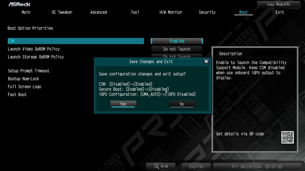 B650M Pro RS レガシーブート