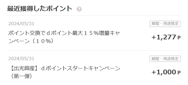 最近獲得したポイント