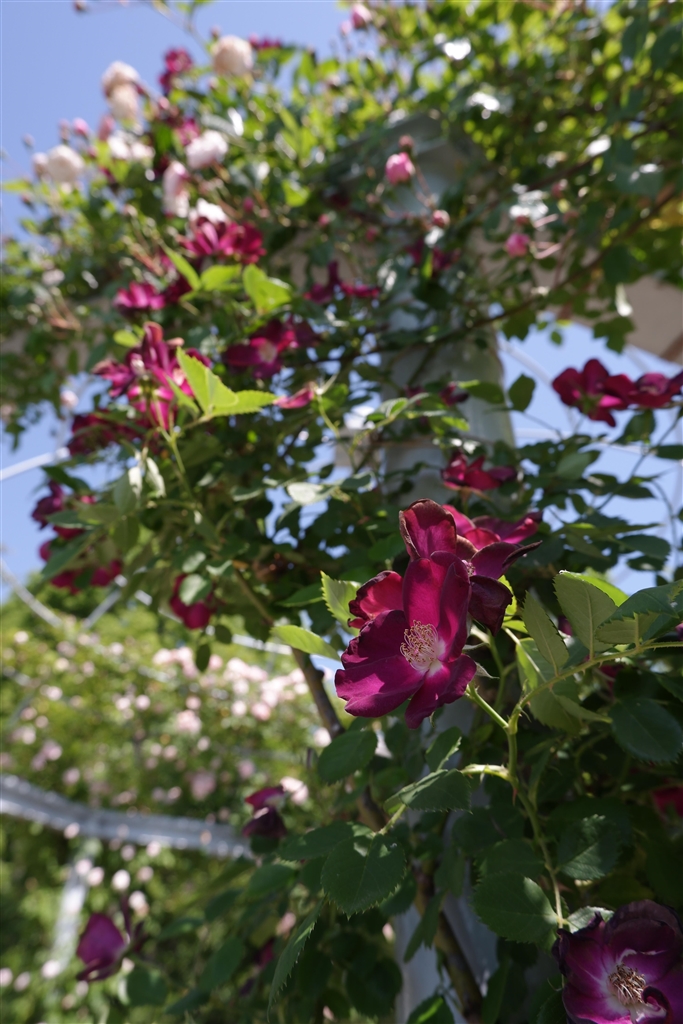 つる薔薇の花もボルドーです。
