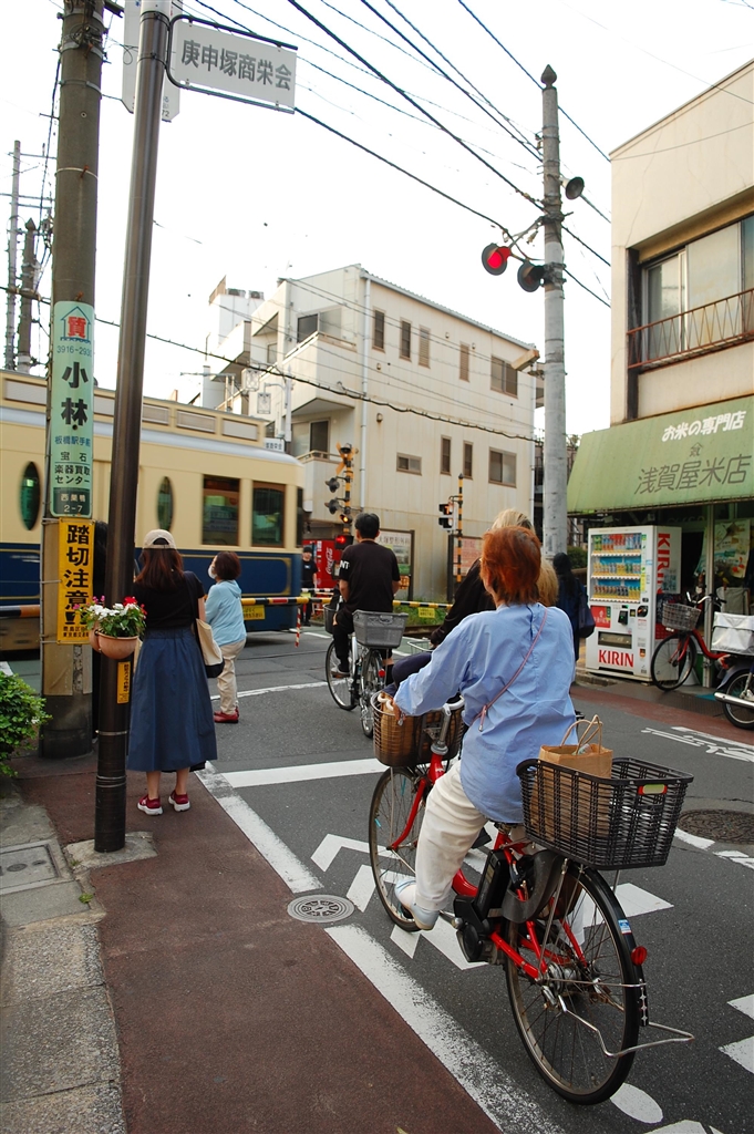 商店街を抜けて都電荒川線庚申塚駅へ