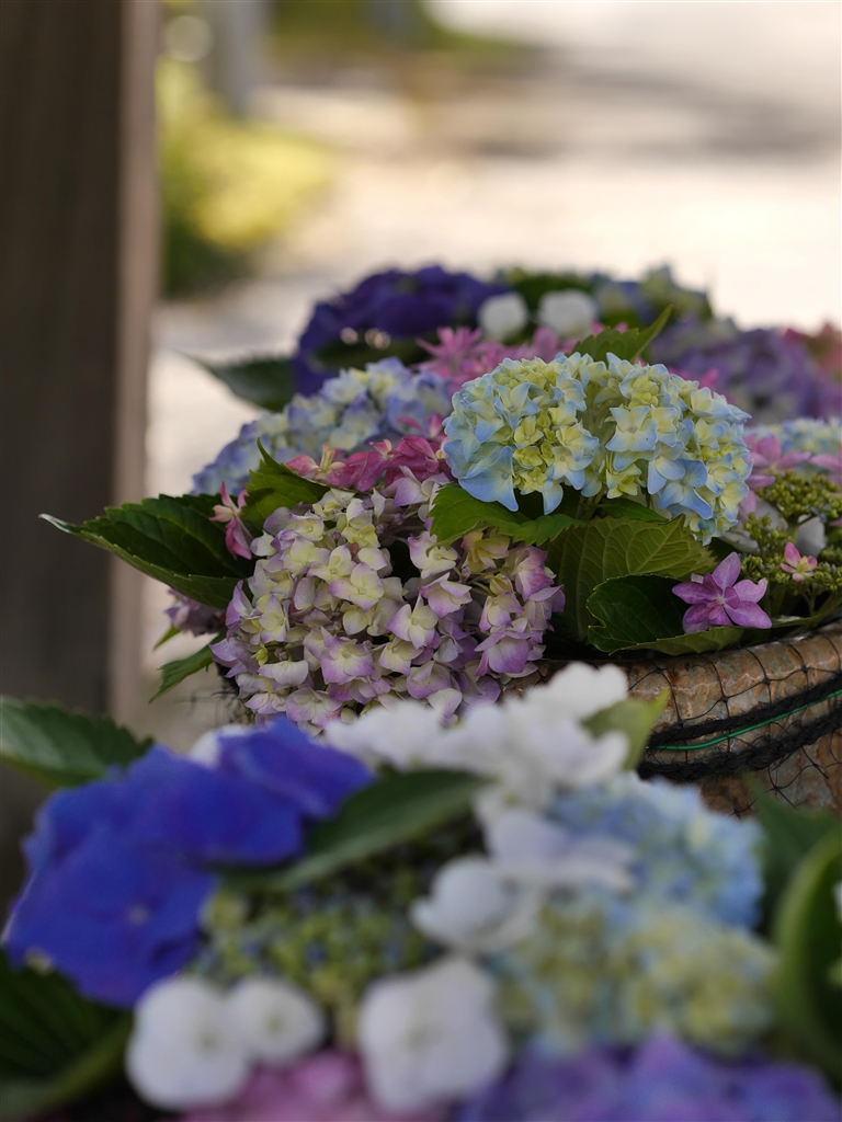 木桶に紫陽花が活けてありました。
