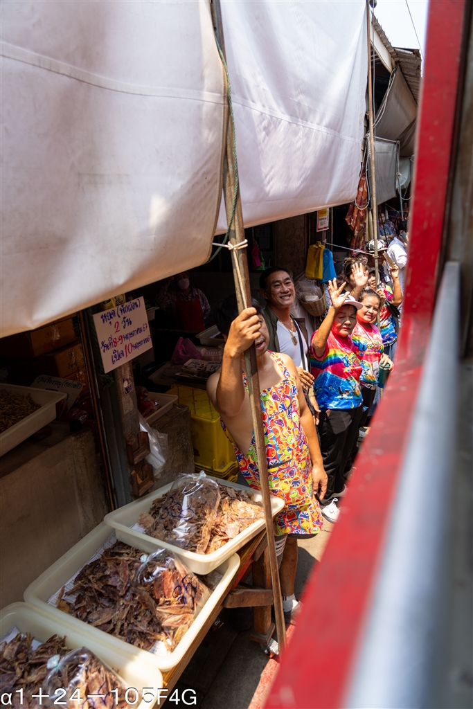 電車(ディーゼルだった気がする)の車窓から市場を見下ろす