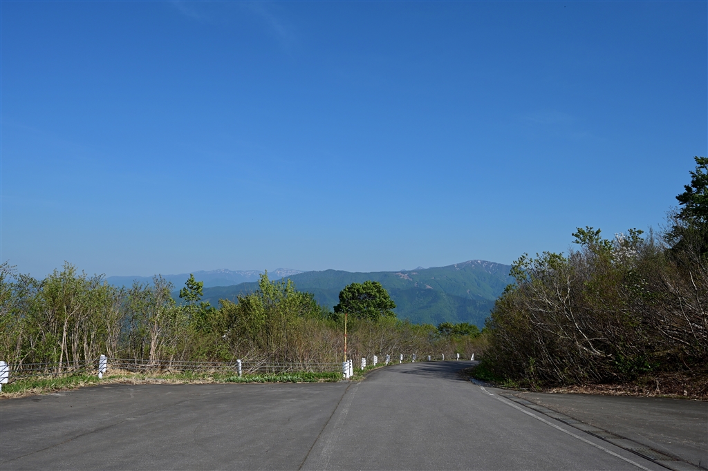 光が原高原に行く途中で見た信州の山々、野沢温泉方向