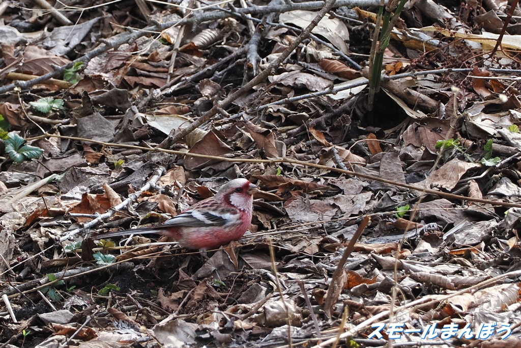 地面に何か?ベニマシコのオスでした