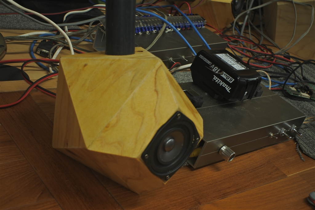 左 双四角錐反柱 右 我がメインアンプ