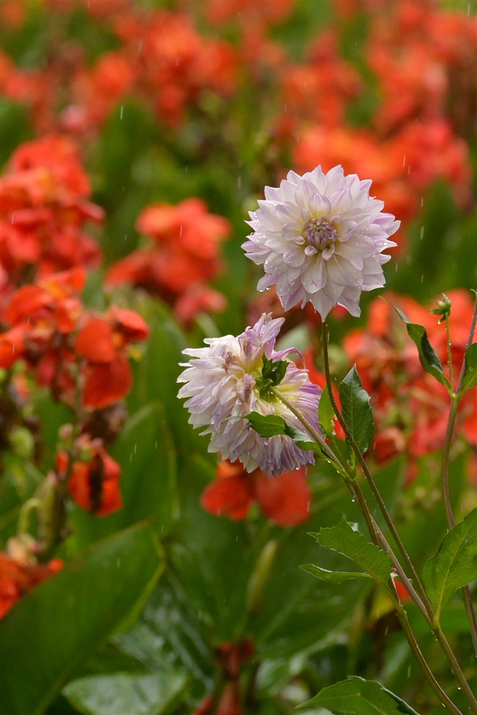 ダリアと背景はカンナ