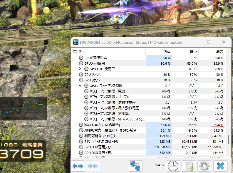 TDP285Wで 80%制限使用でした