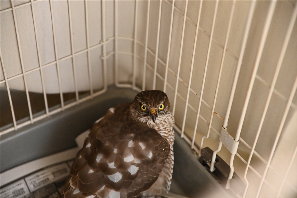 猫用のケージで今晩は寝てもらいます。