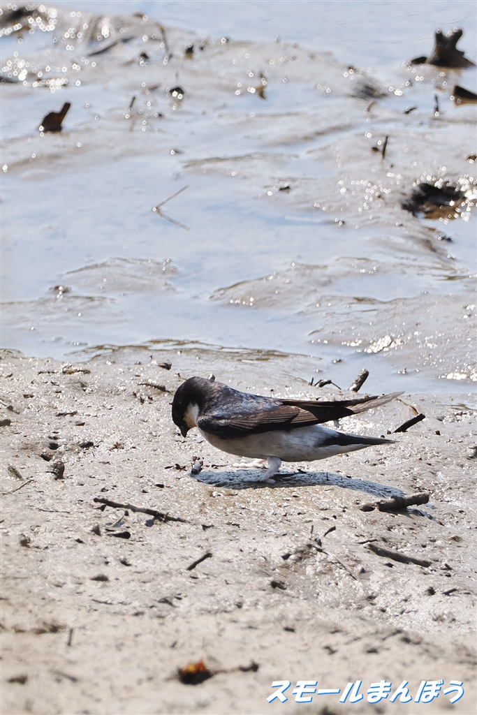 イワツバメは巣材調達中